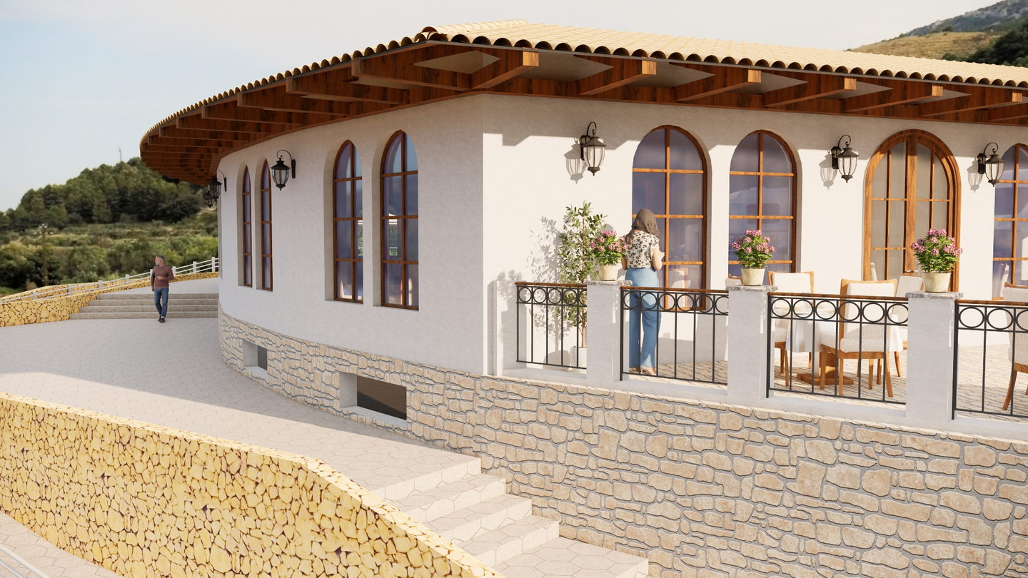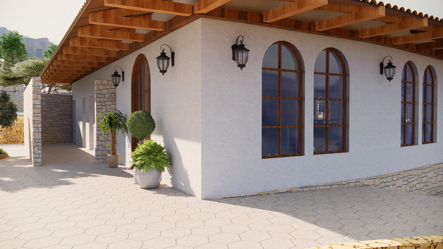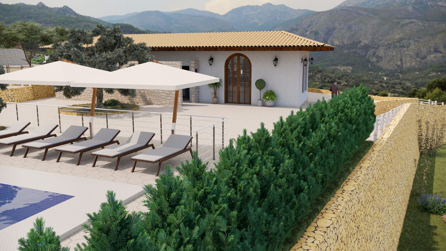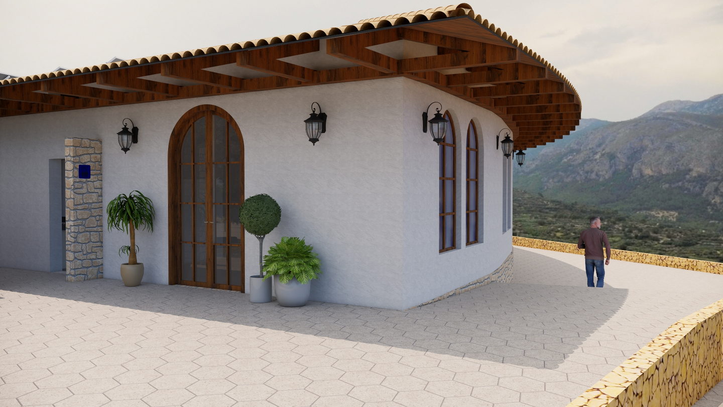 El Ayuntamiento de Benimantell expresó su deseo de que este edificio se integrara de forma más natural en el paisaje circundante y se ajustara a los cánones del estilo «rústico» clásico. A partir de este encargo, hemos revisado el diseño de la fachada, poniendo especial atención en cómo el volumen del edificio se adapta al relieve y dialoga visualmente con el entorno construido y el medio natural.