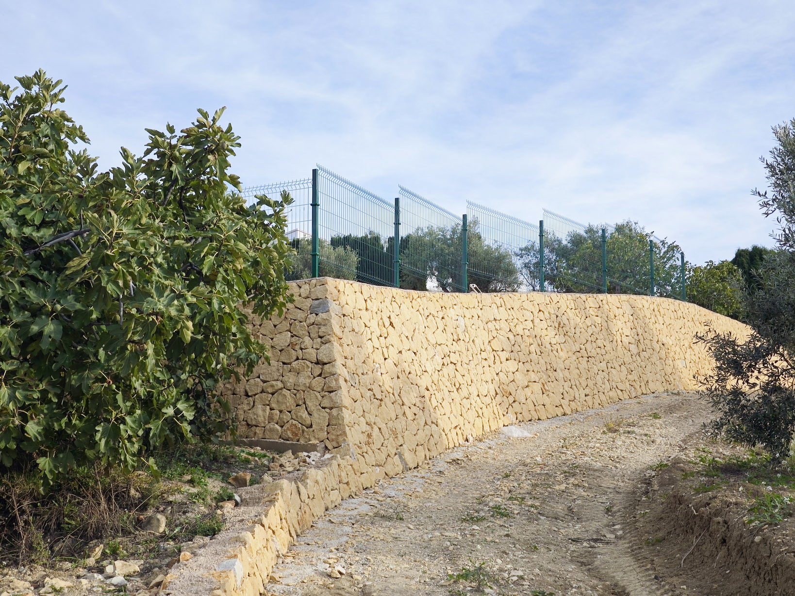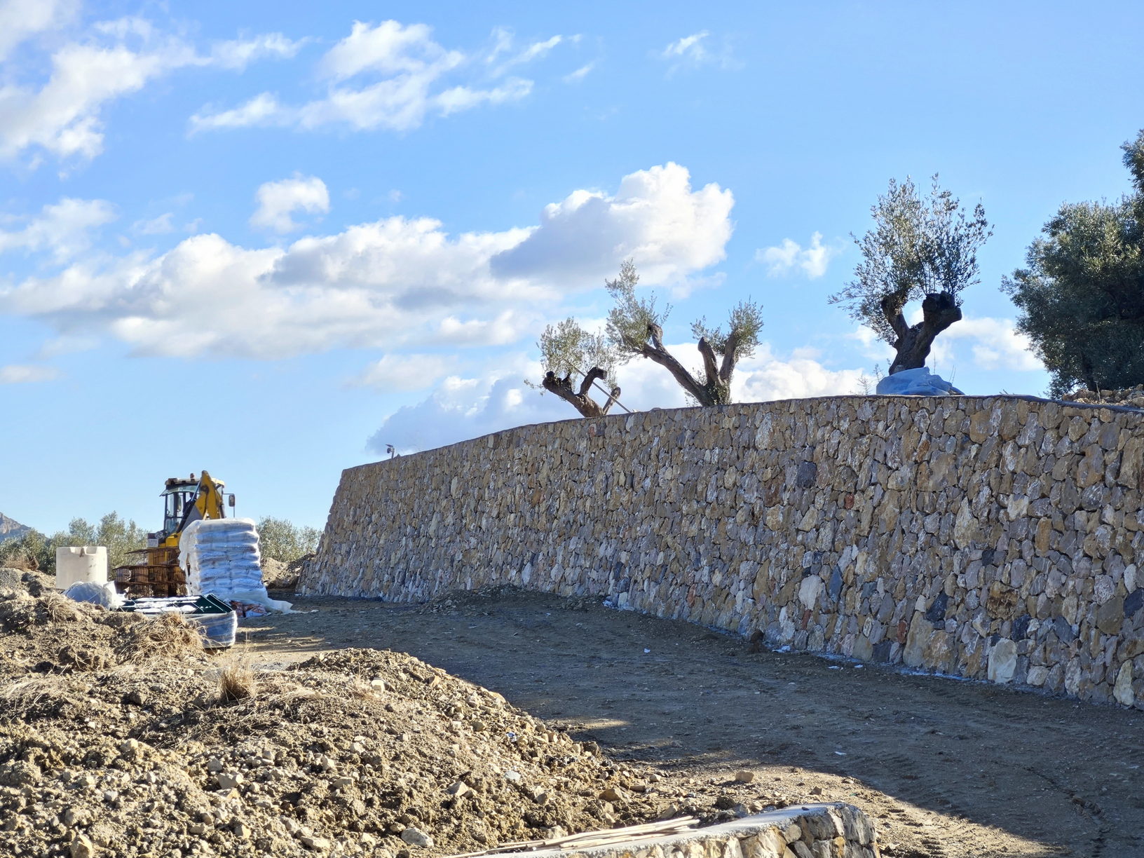 El ayuntamiento de Benimantell nos negó la conexión temporal a la red de agua que habíamos solicitado para llevar a cabo las obras de construcción de muros de contención de piedra. Argumentaron que, según ellos, para la construcción de dichos muros no se necesita agua y que la mampostería debe realizarse únicamente con piedra seca, sin utilizar mortero.